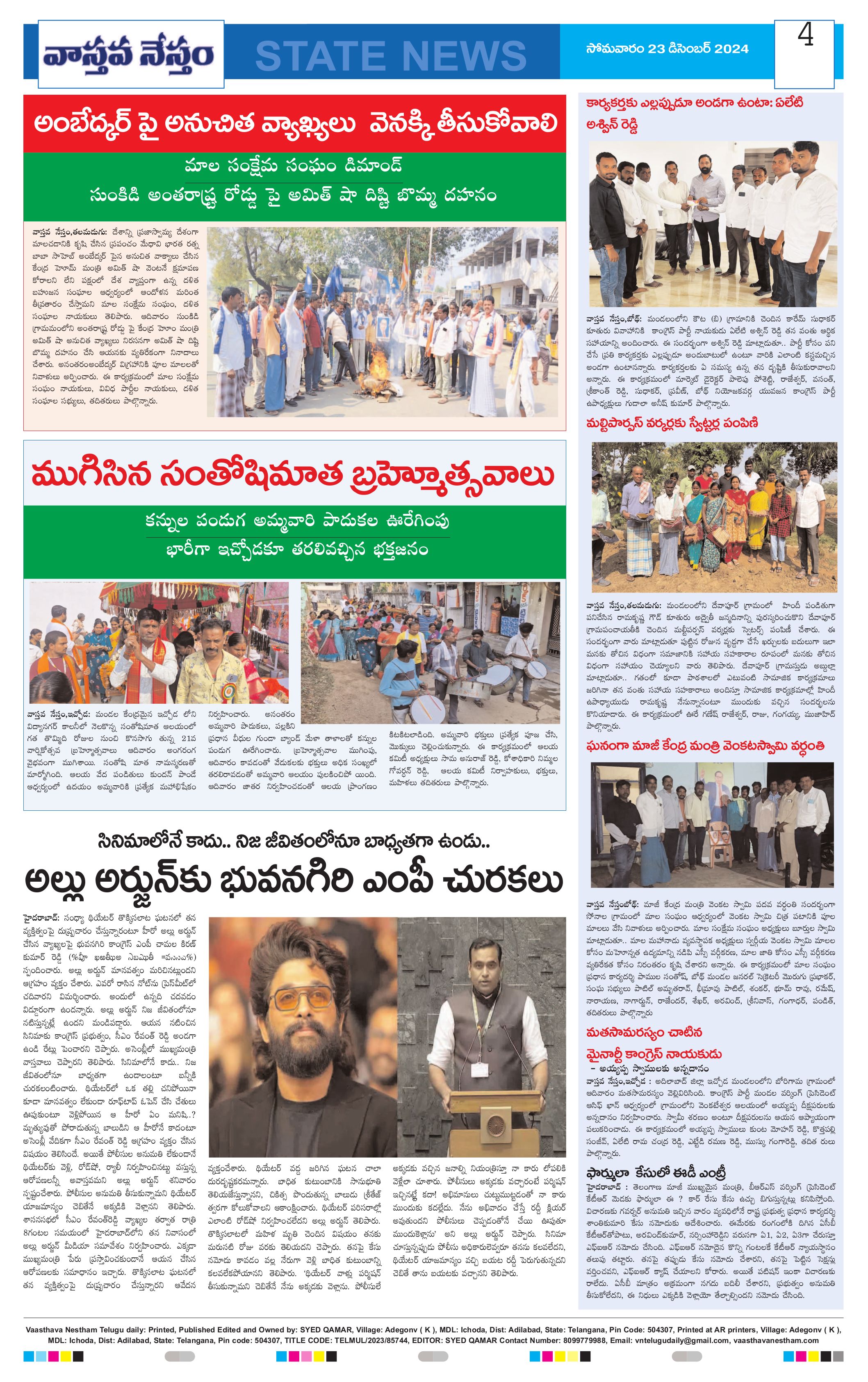 Vaasthava Nestham Telugu News Paper - 23 Dec 2024 - Page 4