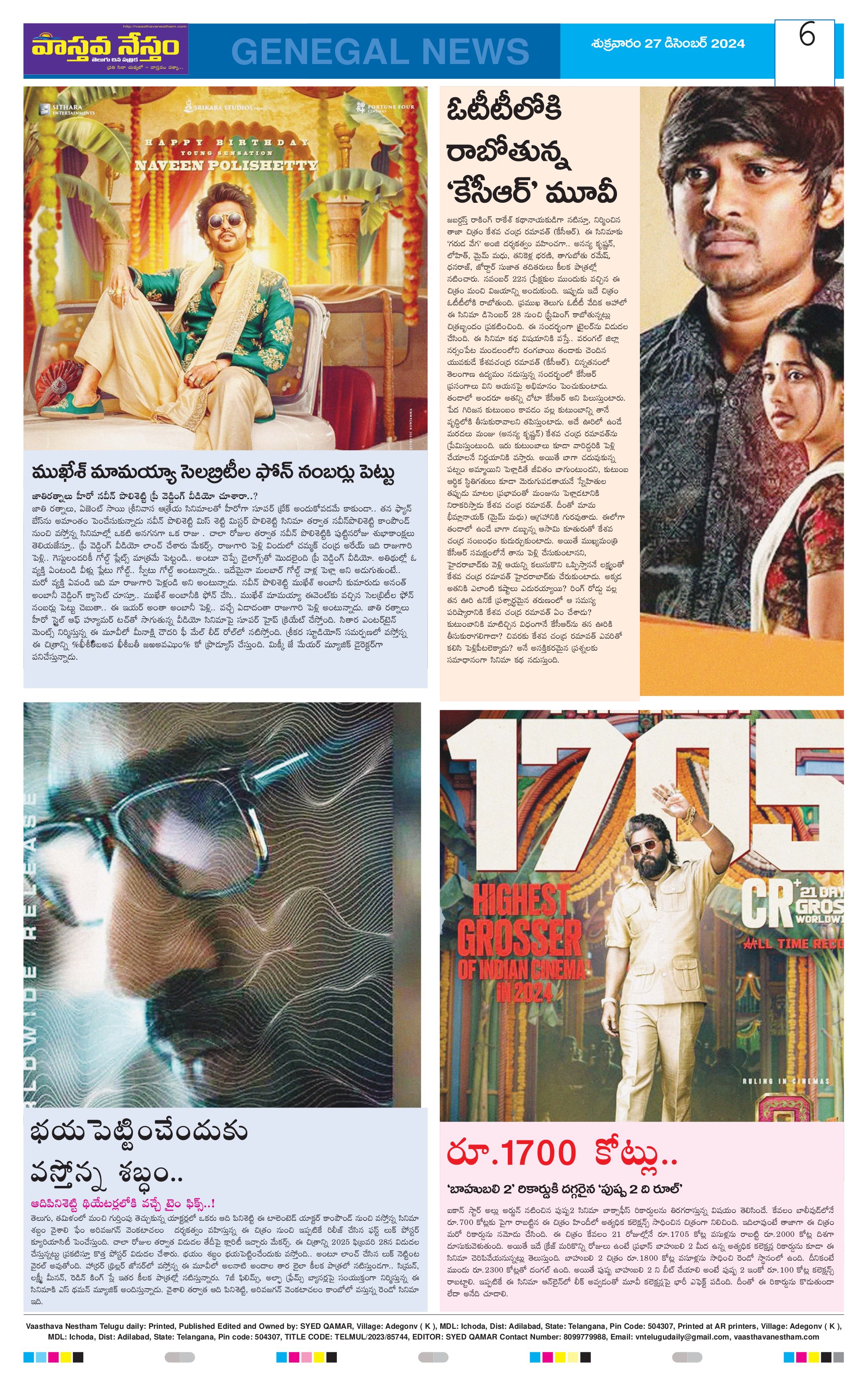 Vaasthava Nestham Telugu News Paper - 27 Dec 2024 - Page 6
